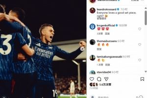 赛后特罗萨德也在个人社媒晒出庆祝进球照片,配文写道:“人人都爱高质量的定位球,难道不是吗”